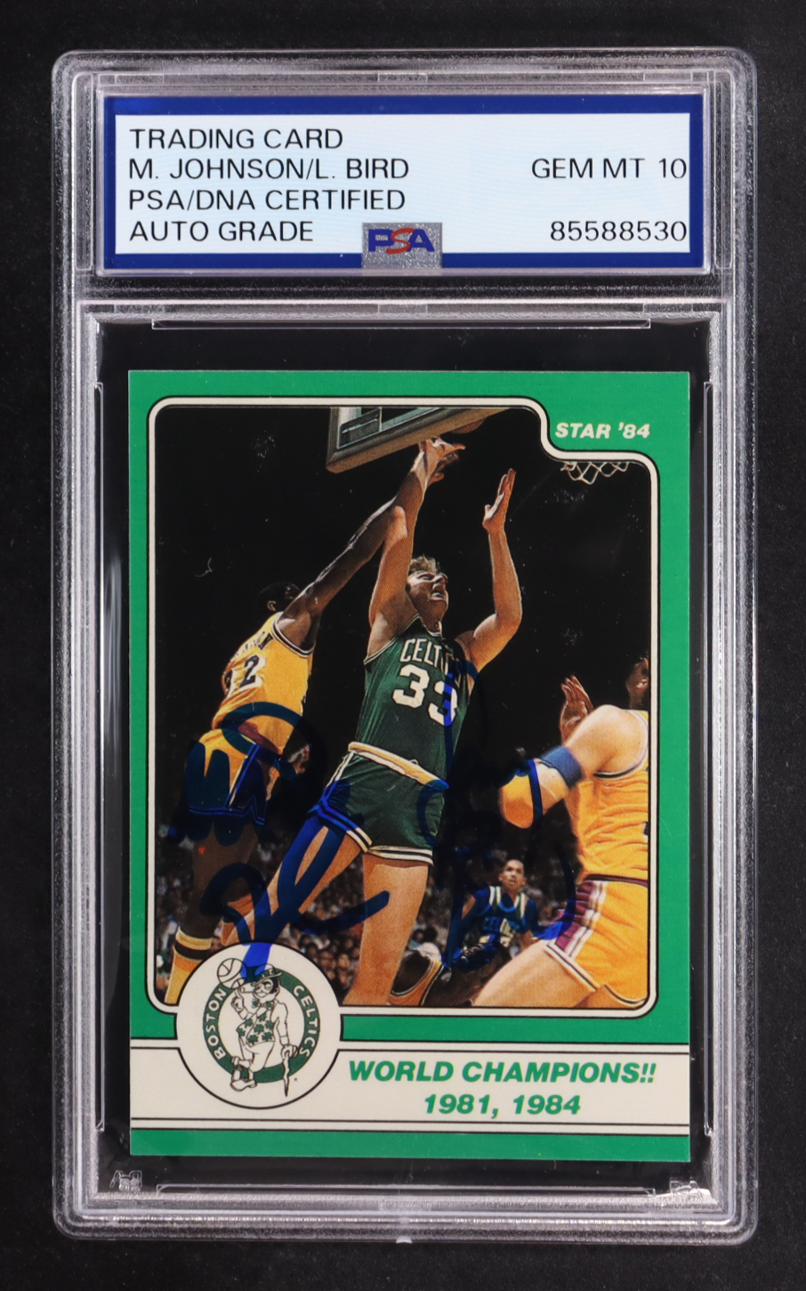 Larry Bird / Magic Johnson Signed 1984 Star World Champions 1981,1984 #14 (PSA 10)