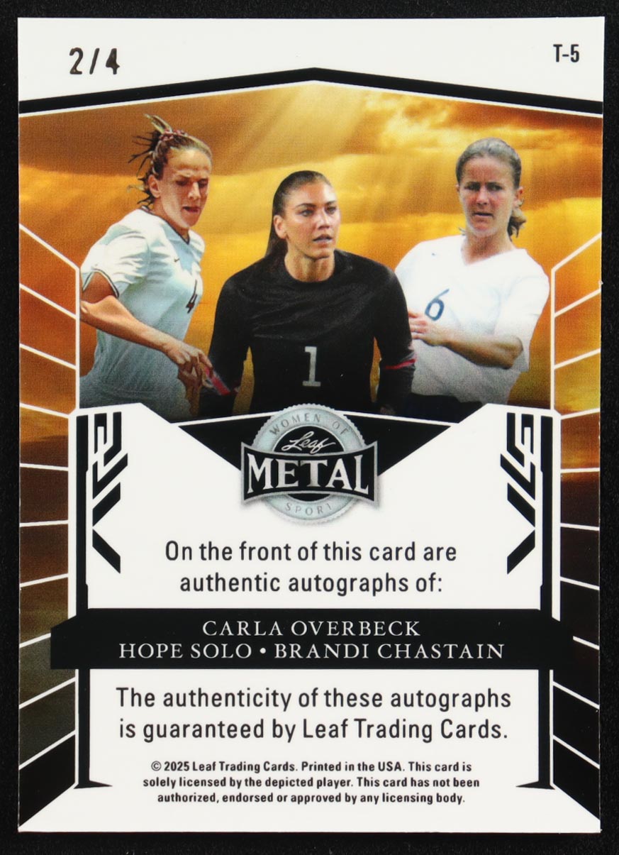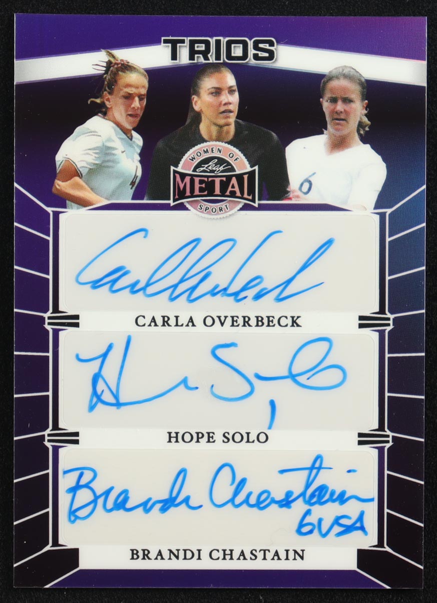 Carla Overbeck / Hope Solo / Brandi Chastain 2025 Leaf Metal Women Of Sport Trios Purple Autographs #T5 #2/4