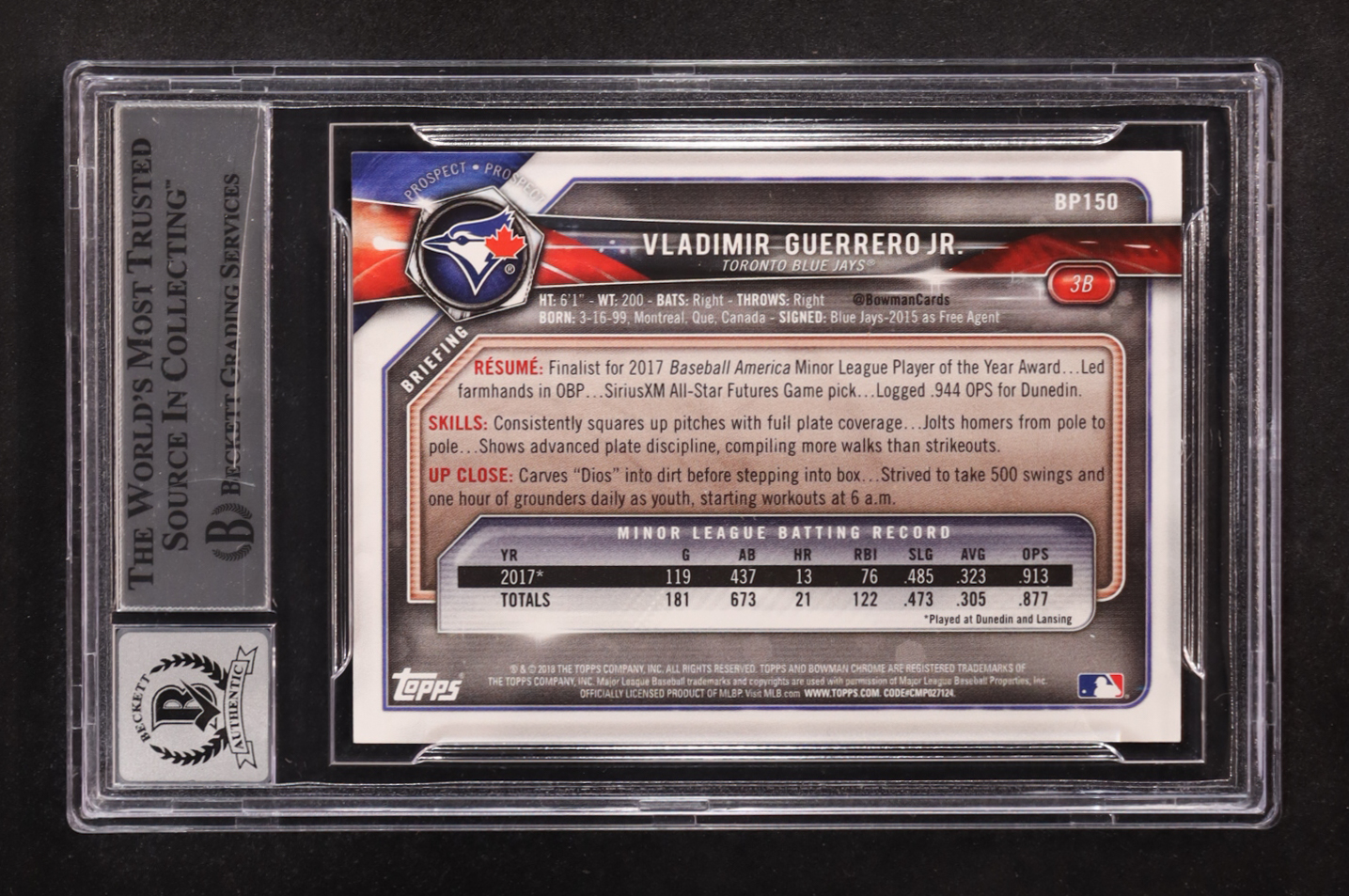 Vladimir Guerrero Jr. Signed 2018 Bowman Prospects BP-150 RC (BGS | Autograph Graded BGS 10)