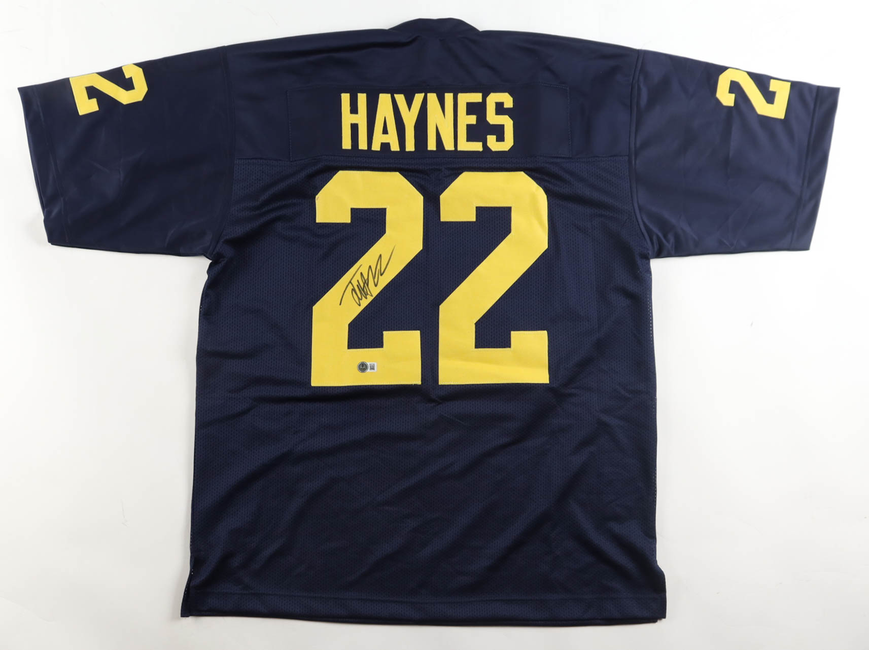 Custom jersey with everything sewn on, size XL. Hand-signed by Justice Haynes.