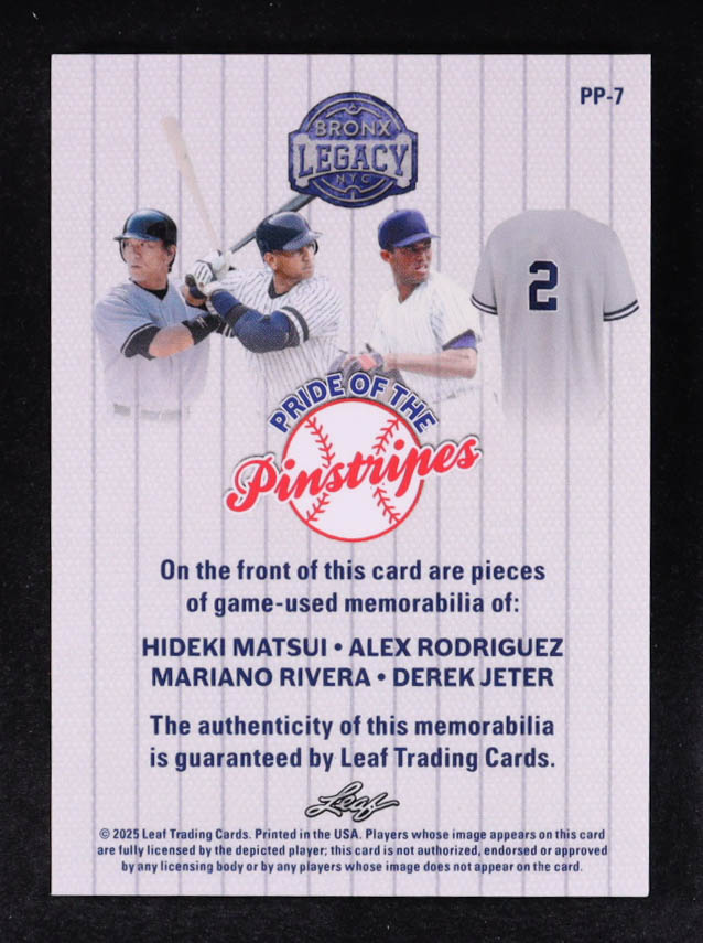 Hideki Matsui / Alex Rodriguez / Mariano Rivera / Derek Jeter 2025 Leaf A Bronx Legacy Pride of the Pinstripes Memorabilia Spectrum Red Holofoil #PP7 #2/6