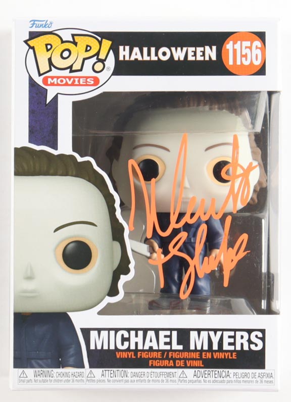 Vinyl figure measures approximately 4" tall and the packaging has been hand-signed & inscribed by Nick Castle (Michael Myers).