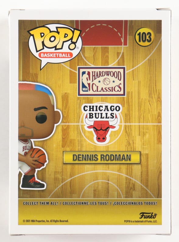 Vinyl figure measures approximately 4" tall and has been hand-signed on the packaging by Dennis Rodman (Chicago Bulls, HOF).