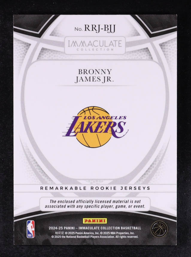 Bronny James Jr. 2024-25 Immaculate Collection Remarkable Rookie Jerseys #33 #34/75 RC