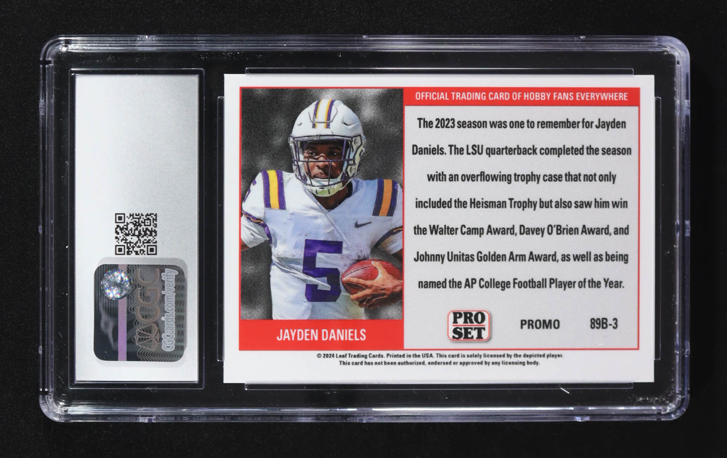 Jayden Daniels 2024 Leaf Collective Promos '89 Pro Set Light Blue Shimmer #89B-3 RC (CGC 10)