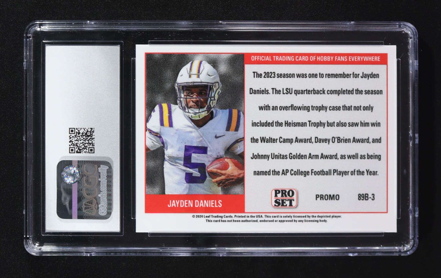 Jayden Daniels 2024 Leaf Collective Promos '89 Pro Set Light Blue Shimmer #89B-3 RC (CGC 10)