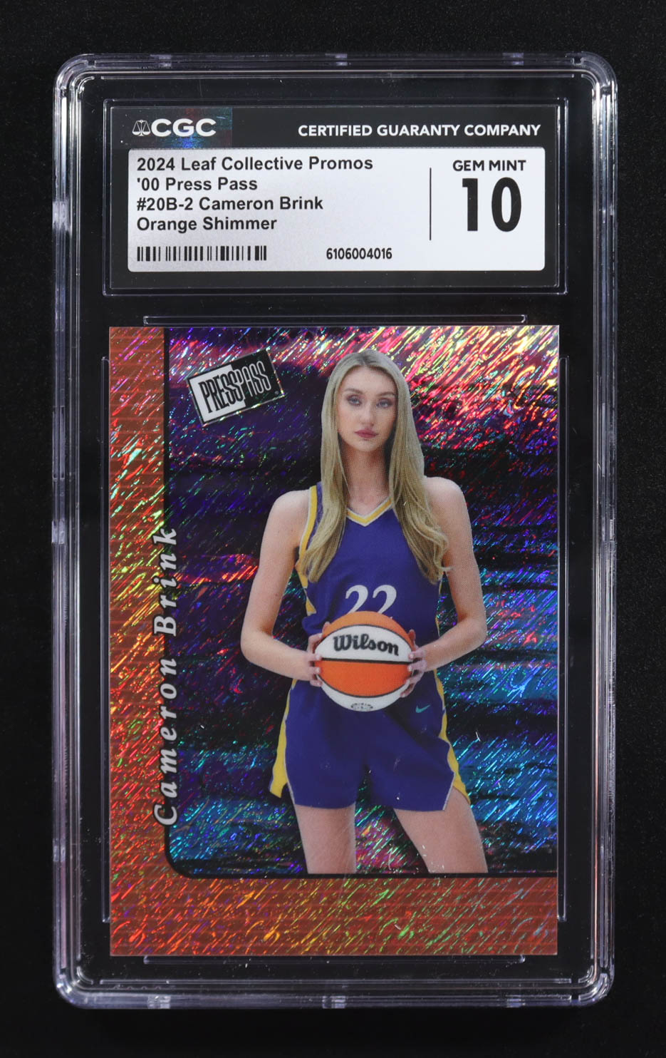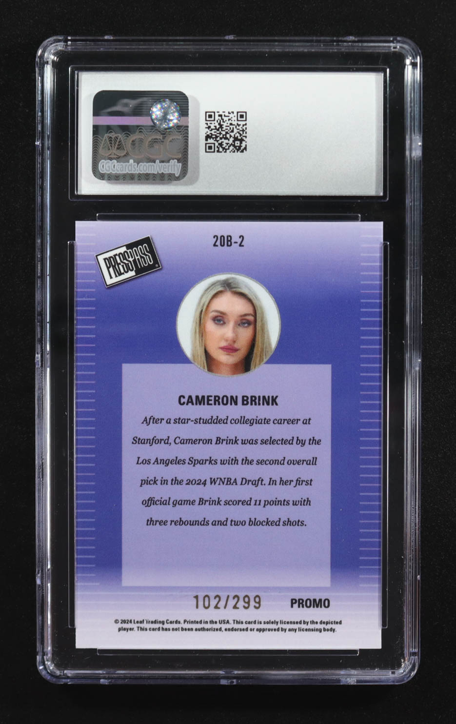 Cameron Brink 2024 Leaf Collective Promos '00 Press Pass Orange Shimmer #20B-2 RC #102/299 (CGC 10)