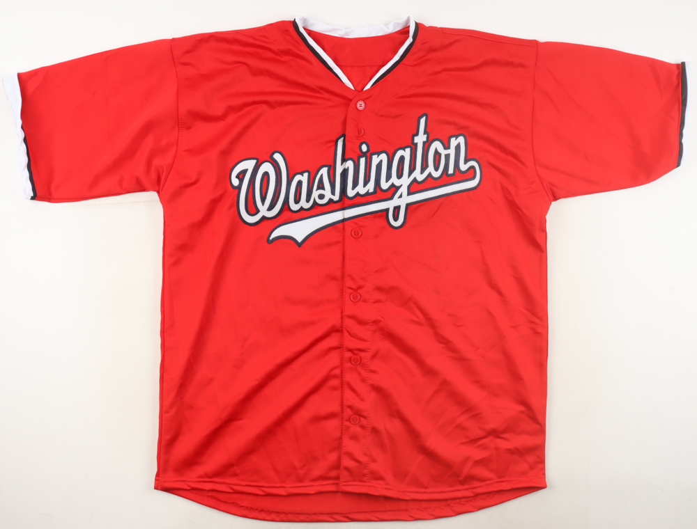 Custom jersey with everything sewn on, size XL. Hand-signed by James Wood (Washington Nationals).