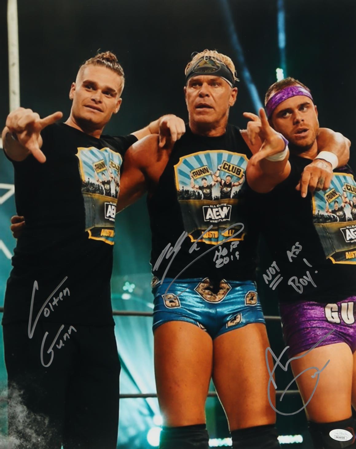 Billy Gunn, Austin Gunn & Colten Gunn Signed WWE 16x20 Photo Inscribed "Not Ass Boy!" & "HOF 19" (JSA)