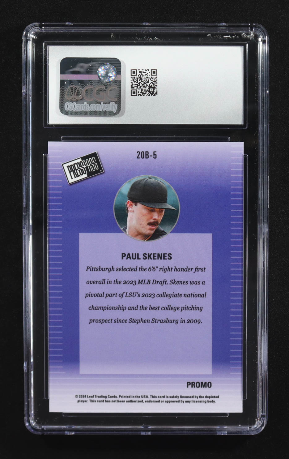 Paul Skenes 2024 Leaf Collective Promos '00 Press Pass Light Blue Shimmer #20B-5 RC (CGC 10)
