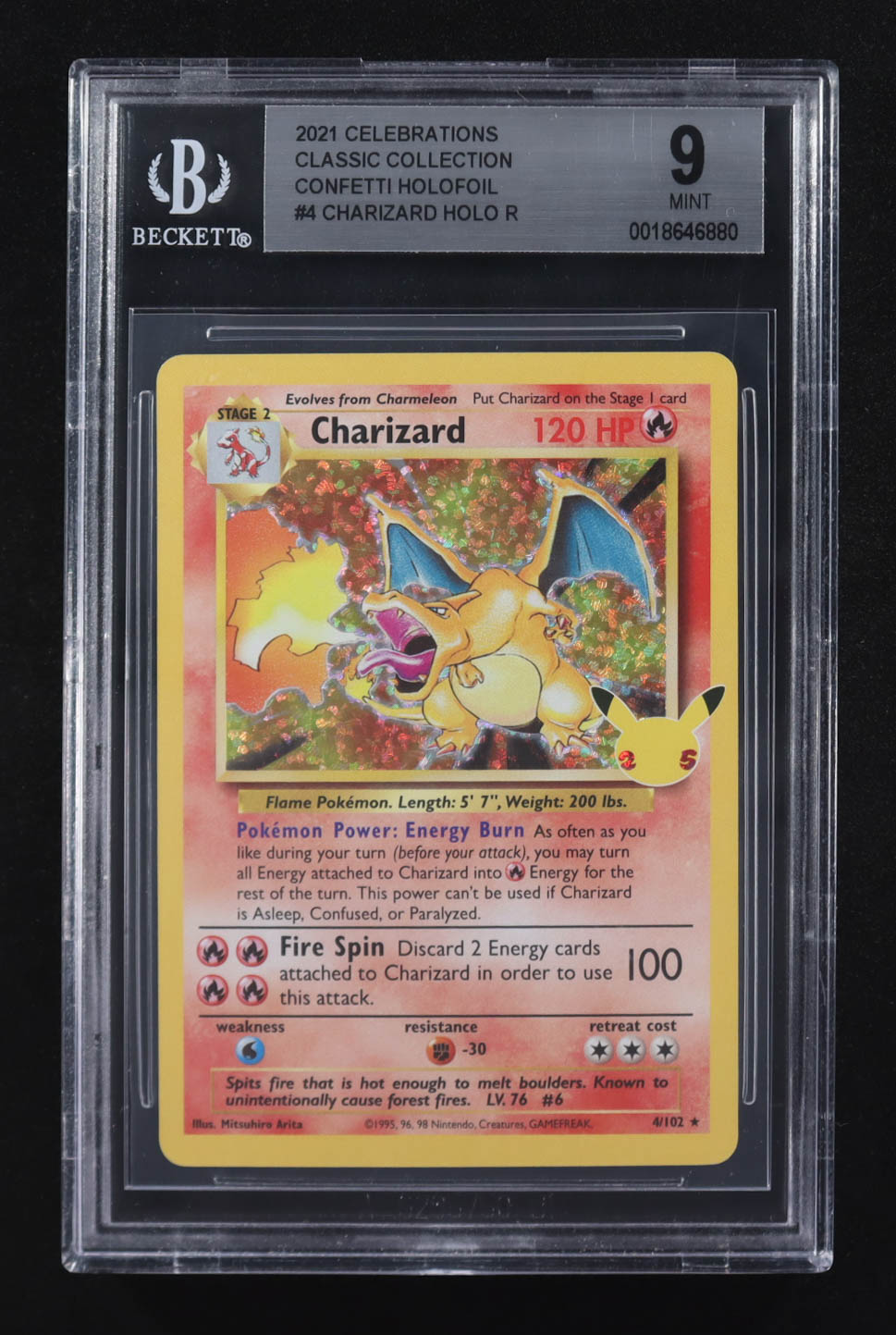 Charizard 2021 Pokemon Celebrations Classic Collection Confetti Holofoil #4 HOLO R (BGS 9)