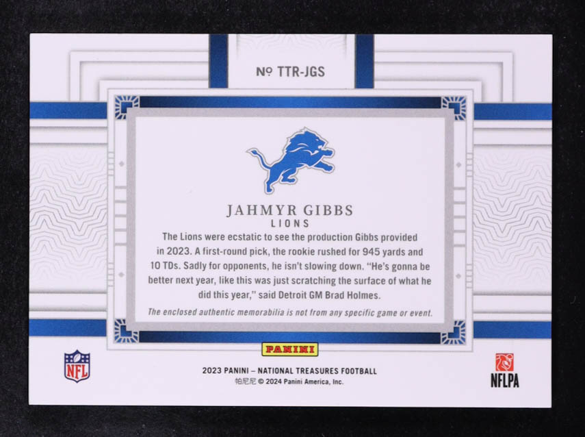Jahmyr Gibbs 2023 Panini National Treasures Tremendous Treasures Rookies #18 #17/49 RC