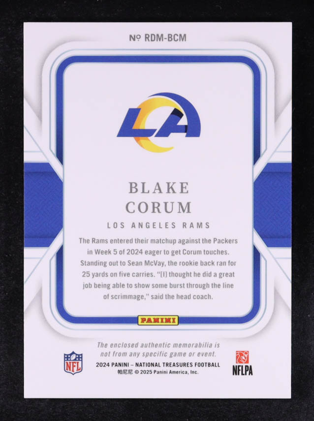 Blake Corum 2024 Panini National Treasures Rookie Dual Materials Holo Gold #3 #09/10 RC