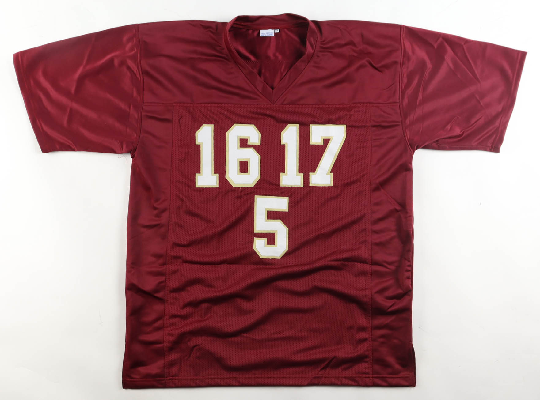 Custom jersey with everything sewn on, size XL. Hand-signed and inscribed by Jameis Winston, Chris Weinke, Charlie Ward.