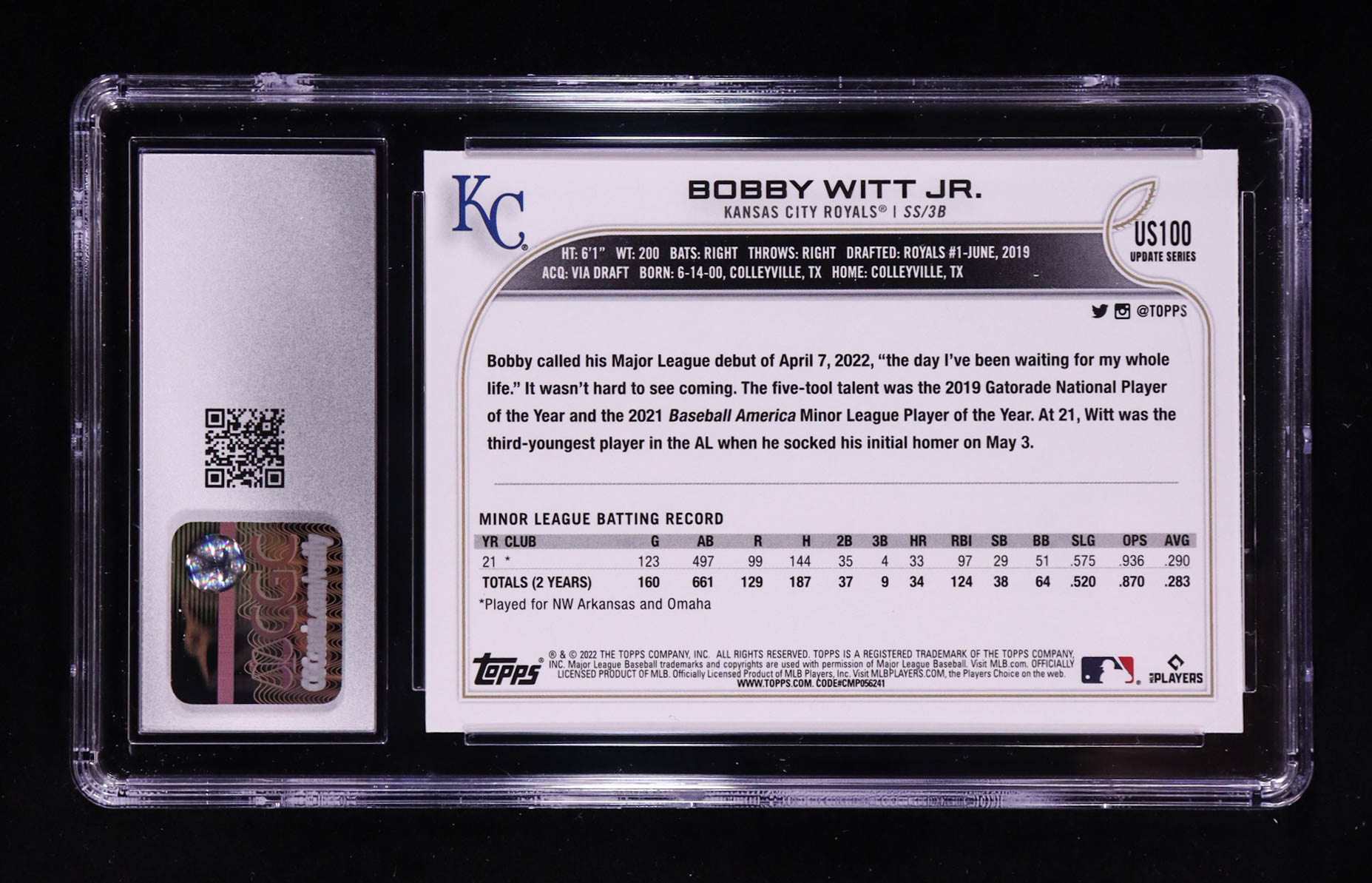 Bobby Witt Jr. 2022 Topps Update #US100 RC (CGC 10)