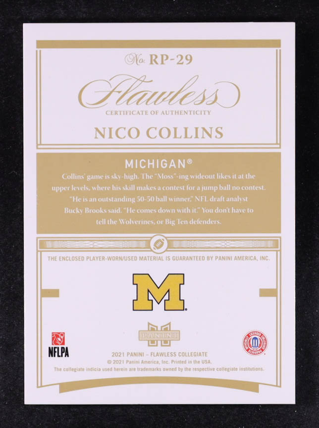 Nico Collins 2021 Panini Flawless Collegiate Rookie Patches #29 #11/25