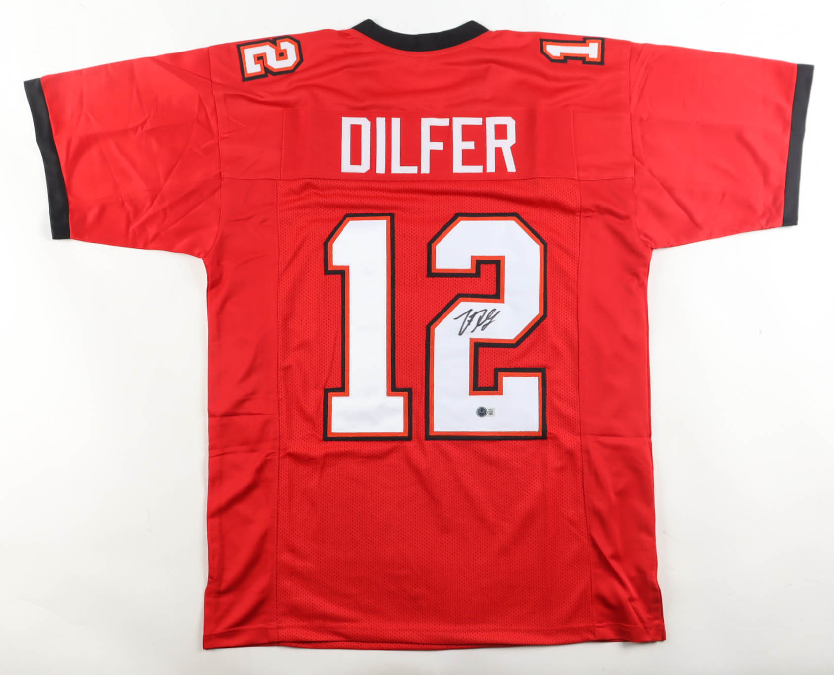 Custom jersey, with everything sewn on, size XL. Hand-signed by Trent Dilfer.