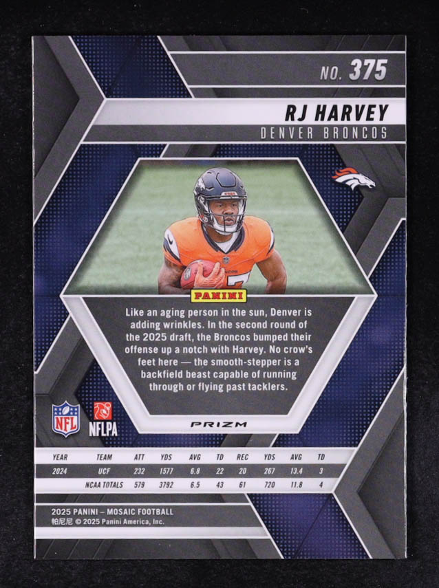 RJ Harvey 2025 Panini Mosaic Mosaic Choice Red and Green #375 RC