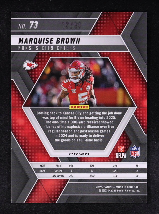 Marquise Brown 2025 Panini Mosaic Mosaic Choice Cherry Blossom #73 #12/20