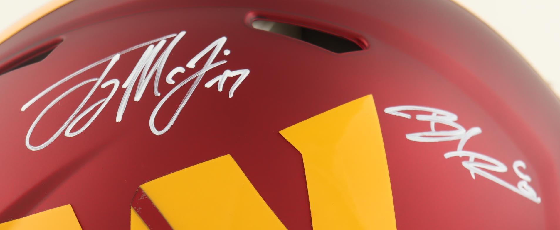 Riddell Washington Commanders full-size authentic on-field speed helmet. Hand-signed by Terry McLaurin and Brian Robinson.