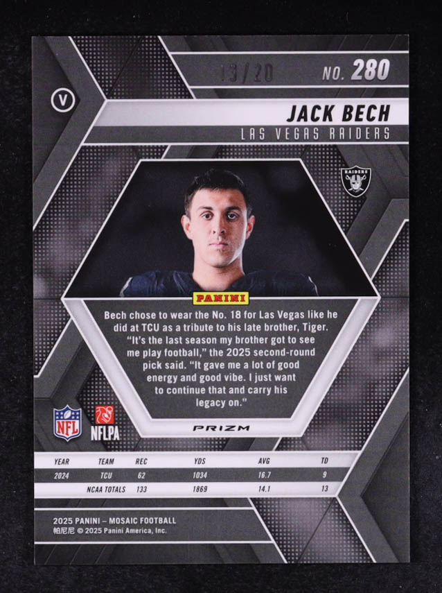 Jack Bech 2025 Panini Mosaic Mosaic Choice Cherry Blossom #280 #13/20 VAR RC