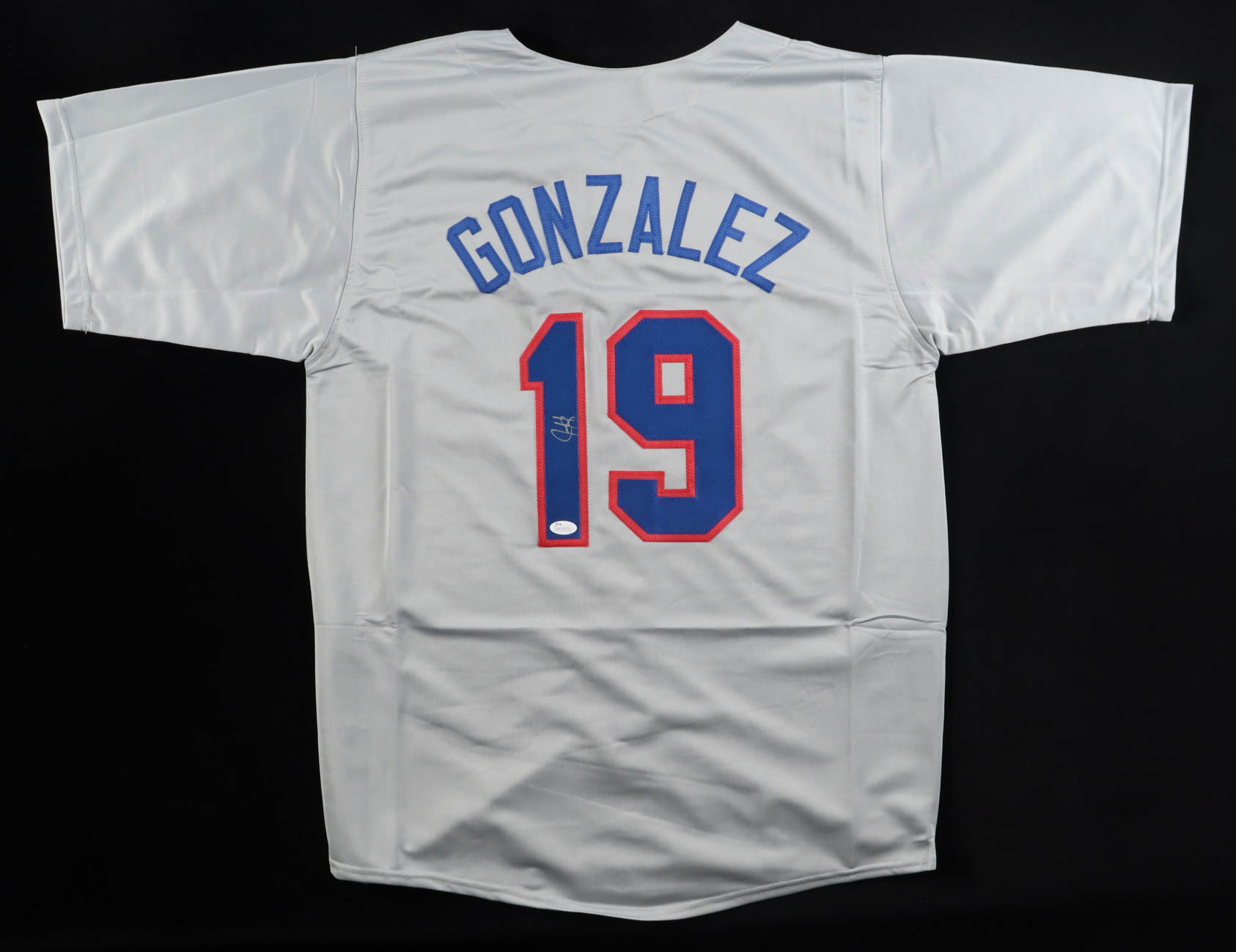 Custom jersey with everything sewn on, size XL. Hand-signed by Juan Gonzalez.