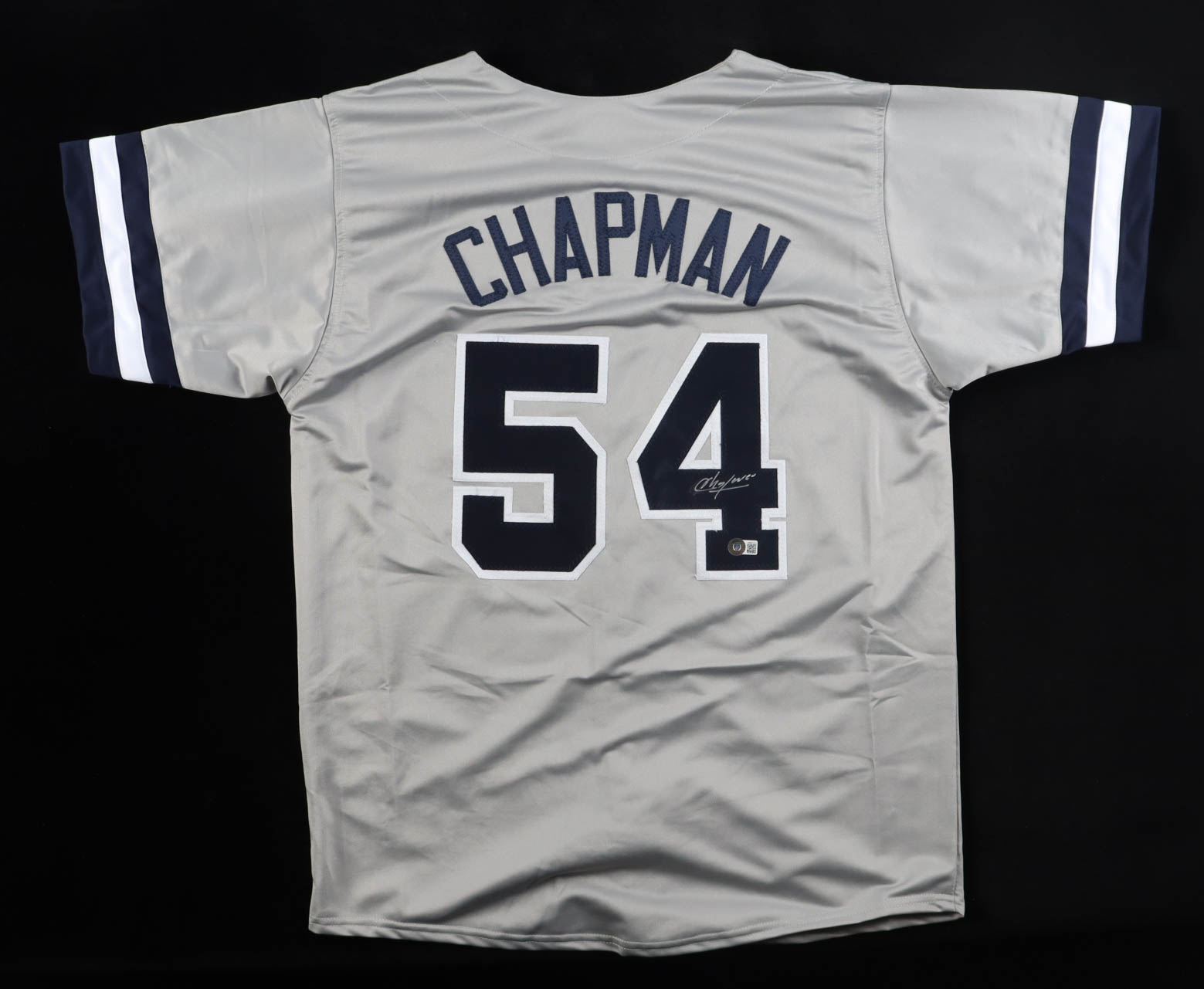 Custom jersey. Everything is sewn on, size XL. Hand-signed by Aroldis Chapman.