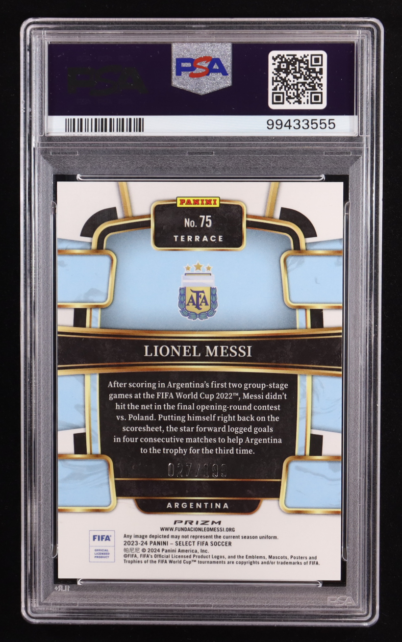 Lionel Messi 2023-24 Select FIFA Pink Mojo #75 #027/199 (PSA 10)