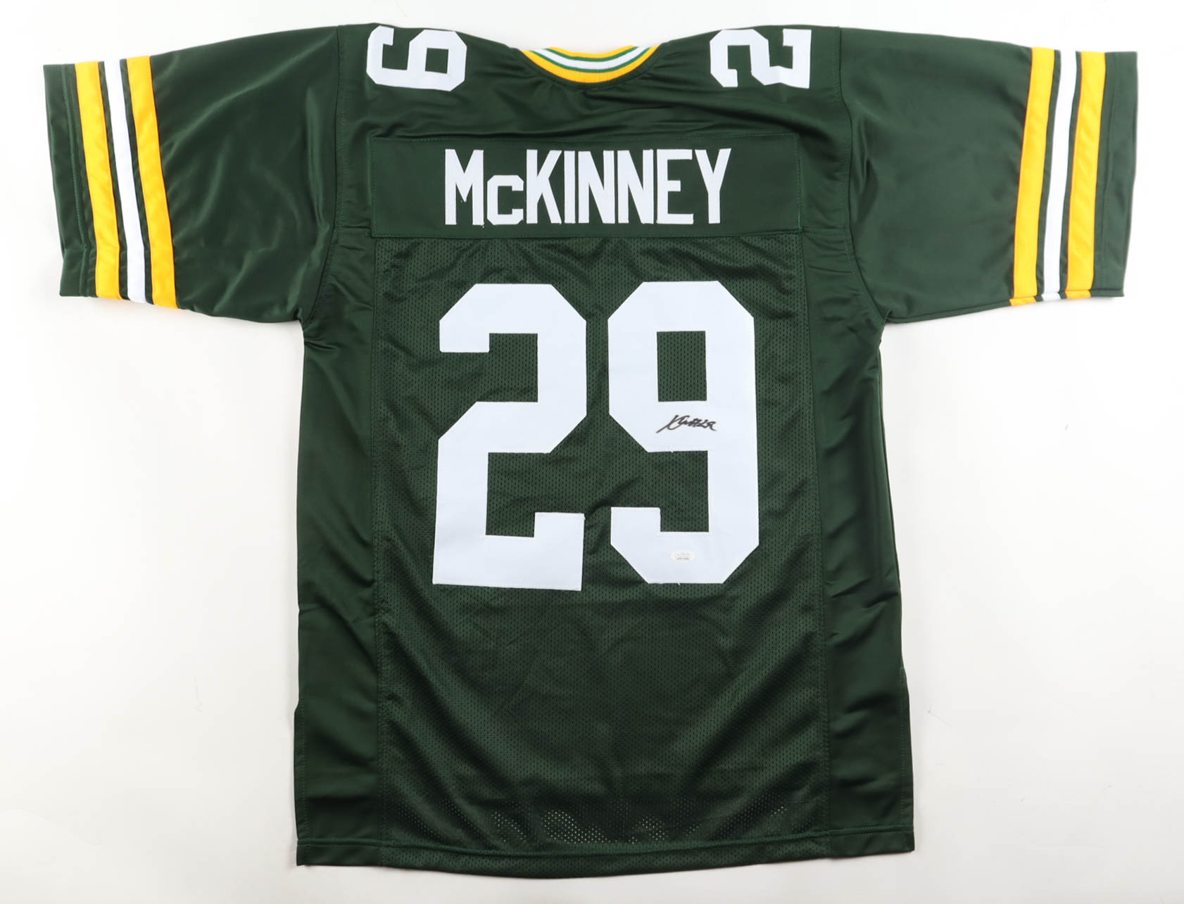 Custom jersey. Everything sewn on, size XL. Has been hand-signed by Xavier McKinney. Please note, there is staining on the reverse number.