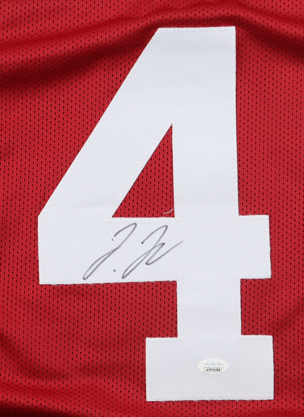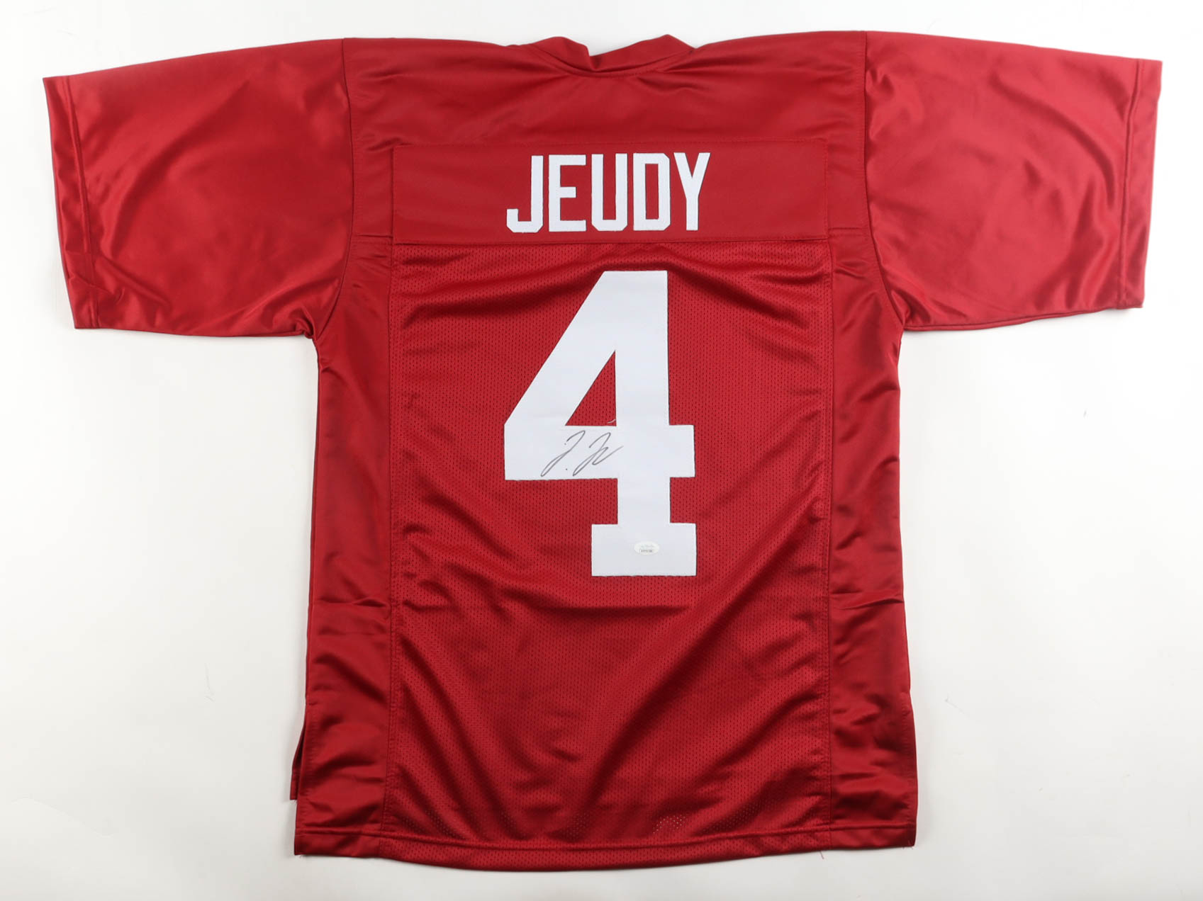 Custom jersey with everything sewn on, size XL. Hand-signed by Jerry Jeudy.