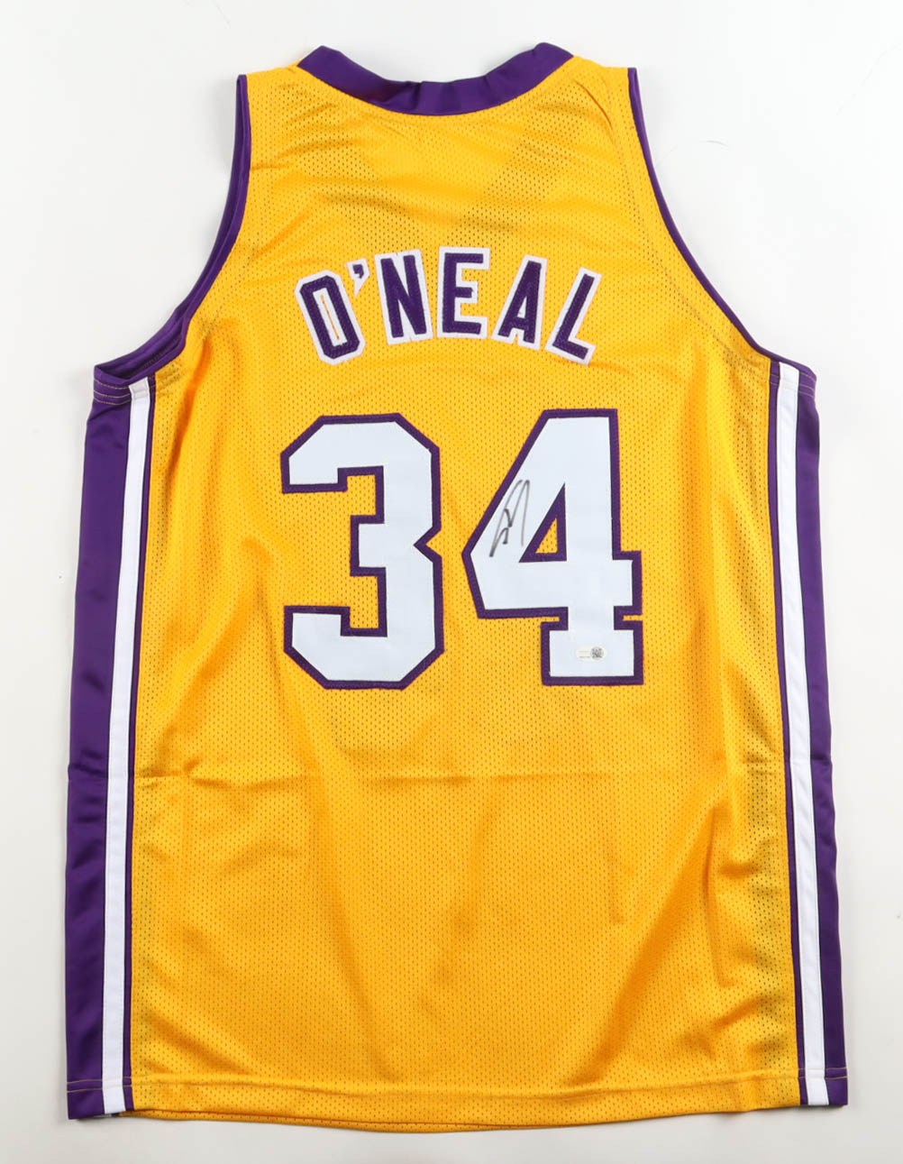 Custom jersey with everything sewn on, size XL. Hand-signed by Shaquille O'Neal (HOF). Please note, there is residue on the reverse number.