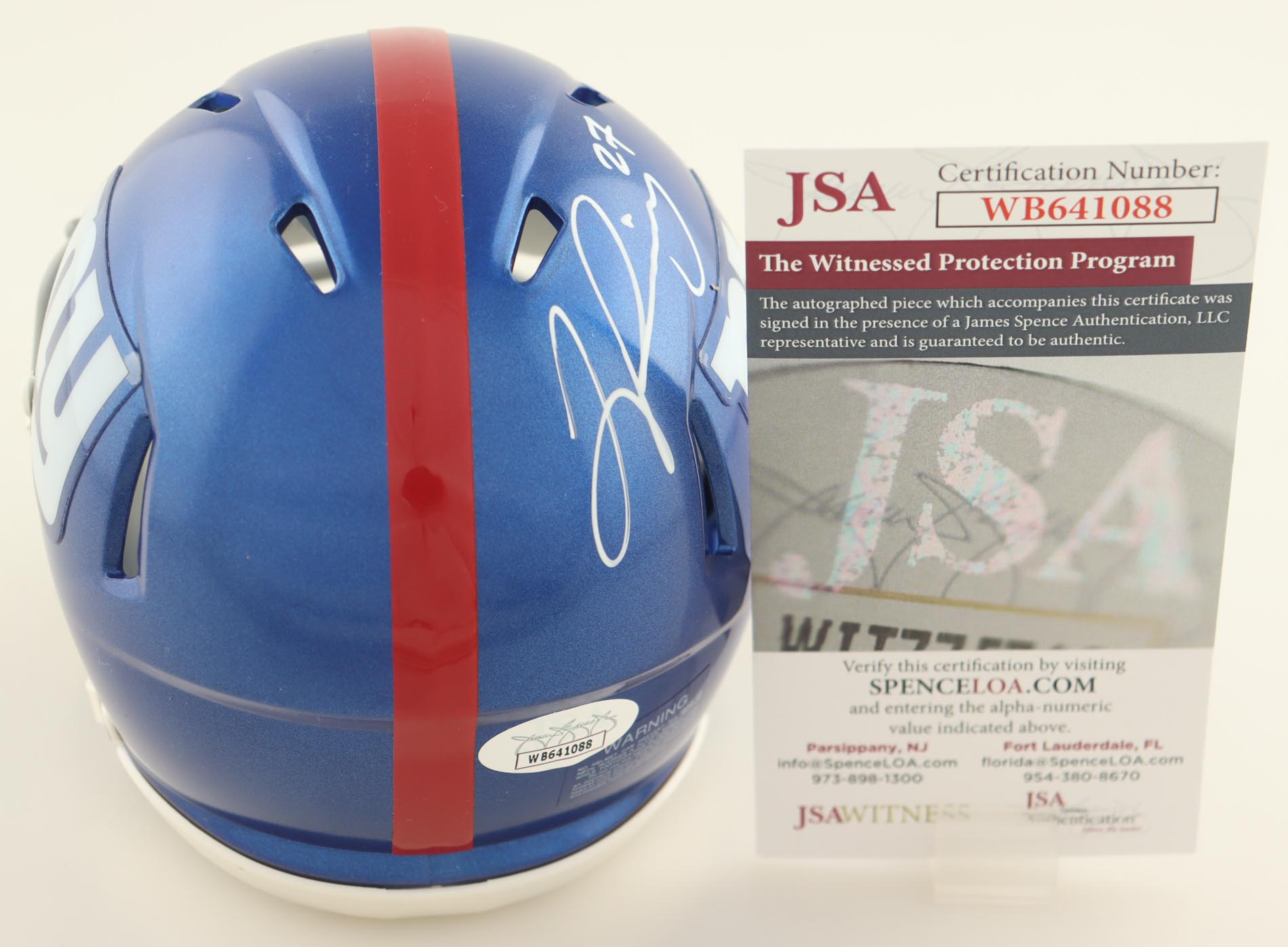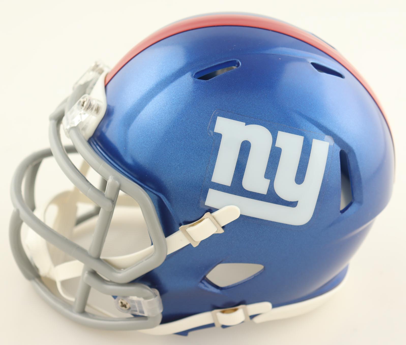 Riddell New York Giants Speed mini helmet has been hand-signed by Jason Pinnock.