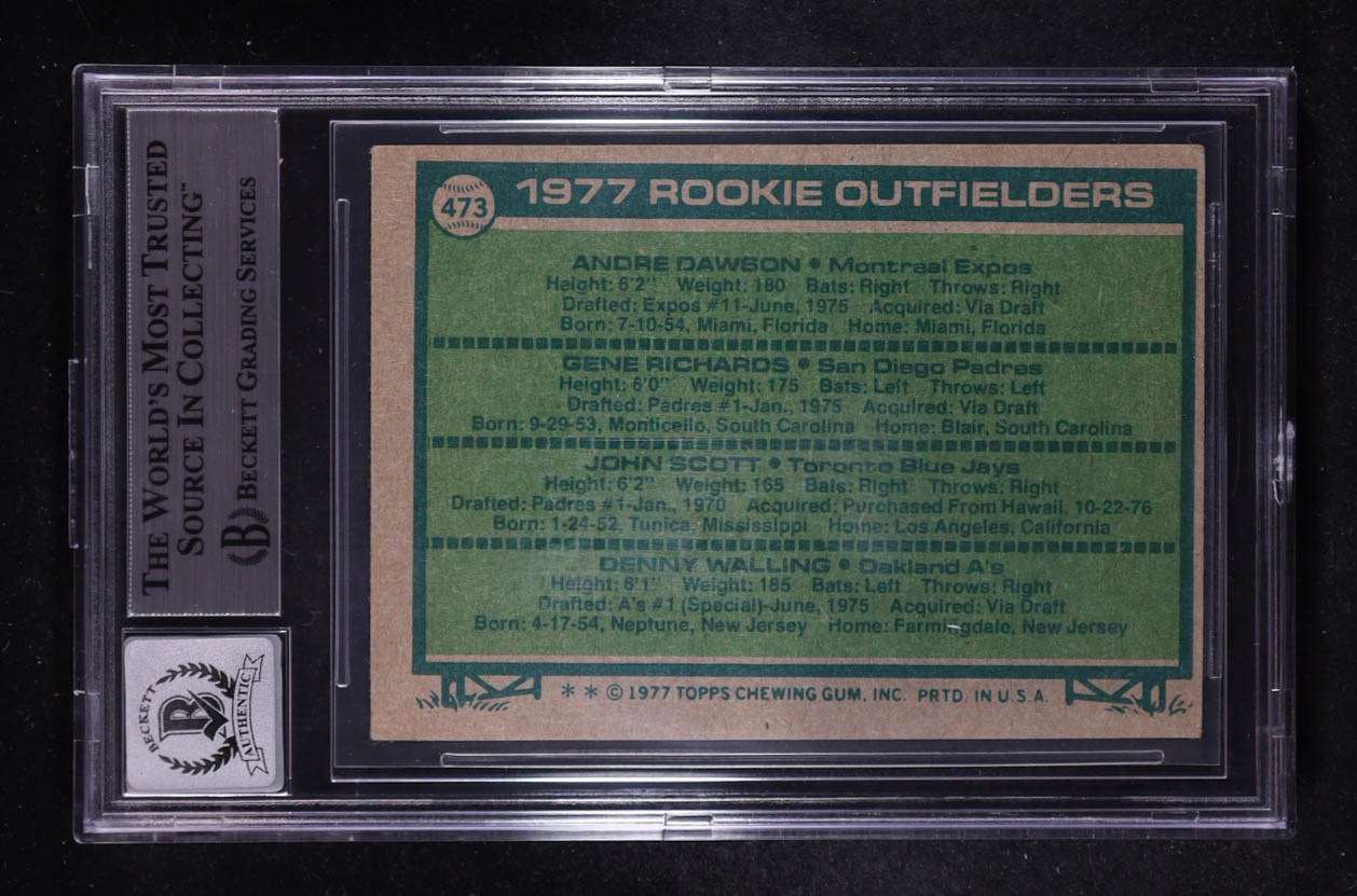 Andre Dawson Signed 1977 Topps Rookie Outfielders #473 RC (BGS | Autograph Graded BGS 10)