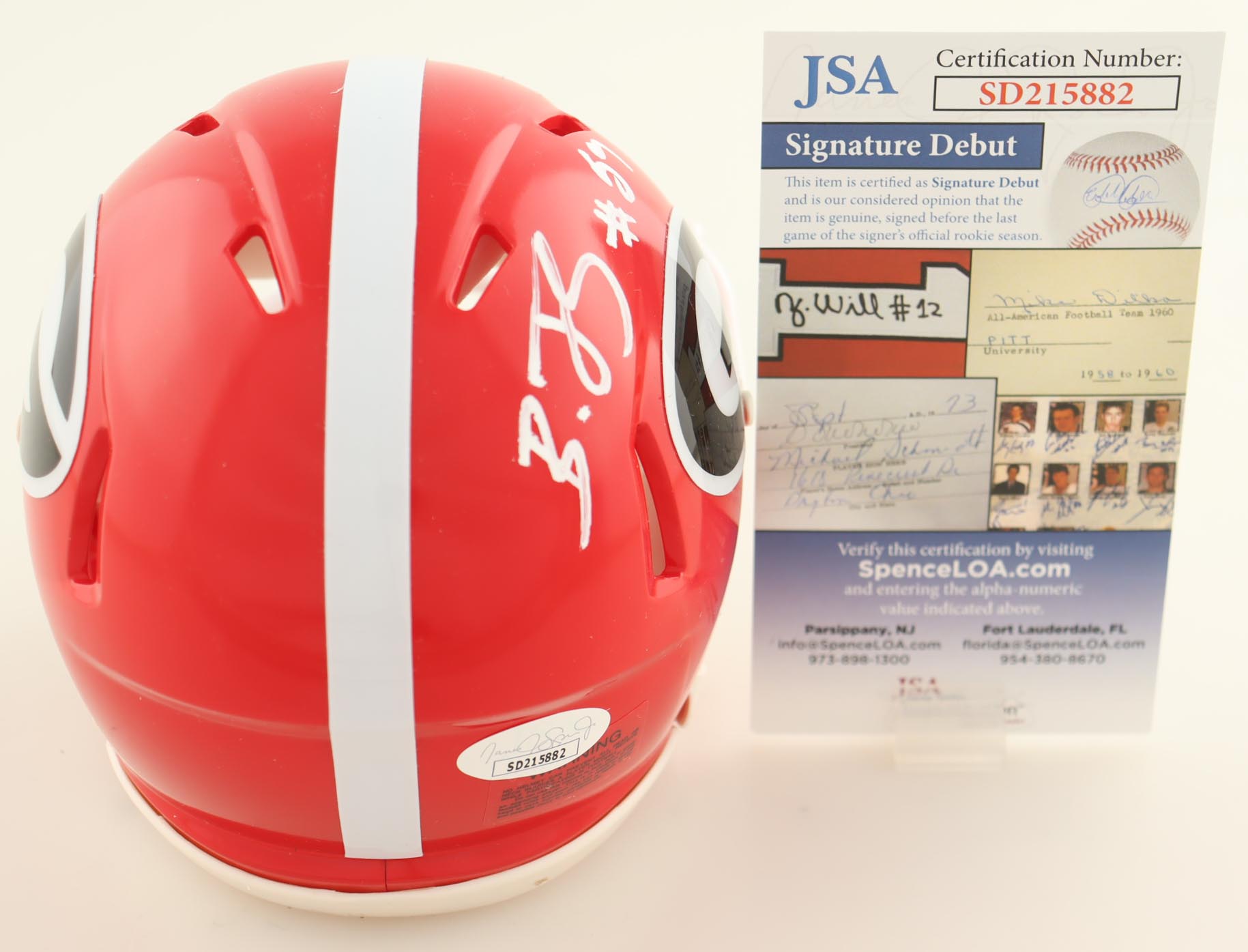 Riddell Georgia Bulldogs speed mini helmet. Hand-signed by Broderick Jones.