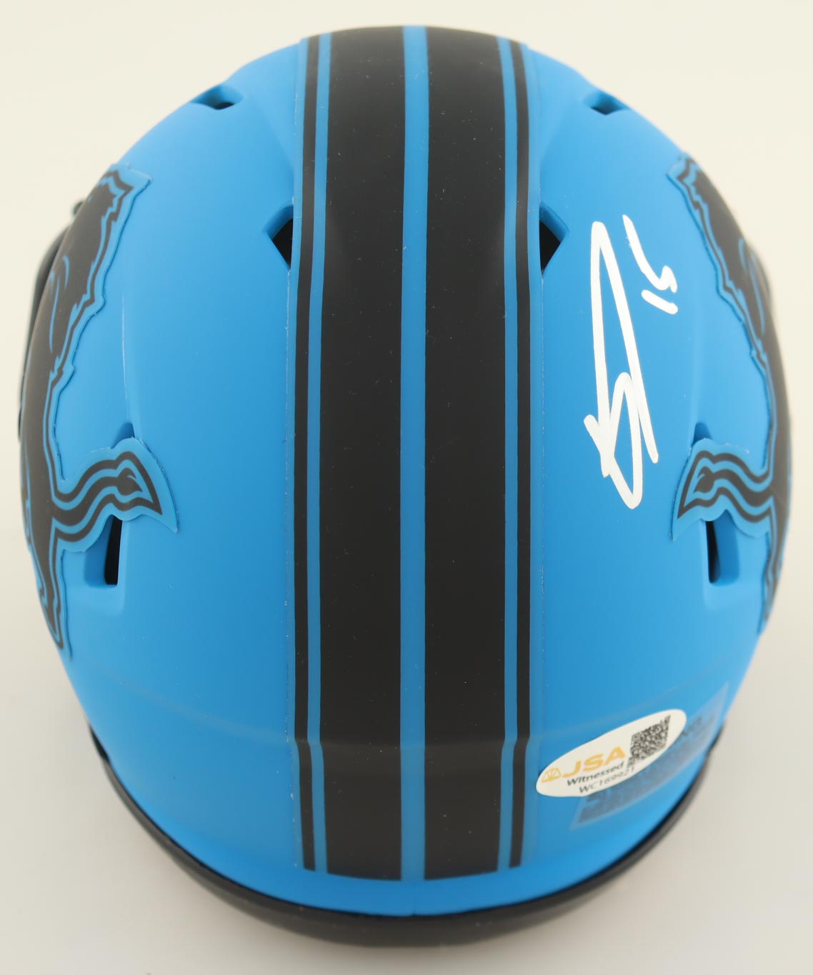 Riddell Detroit Lions Rave Alternate Speed mini helmet has been hand-signed by Grant Stuard.