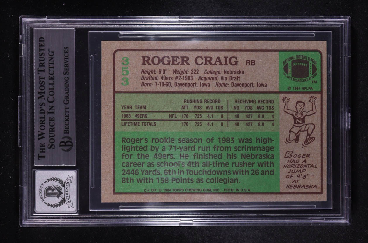 Roger Craig Signed 1984 Topps Inscribed "NFL All Rookie Team" #353 RC (BGS | Autograph Graded BGS 10)