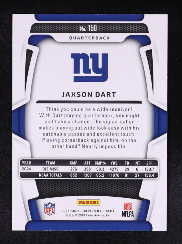 Jaxson Dart 2025 Certified #150 #173/499 RC