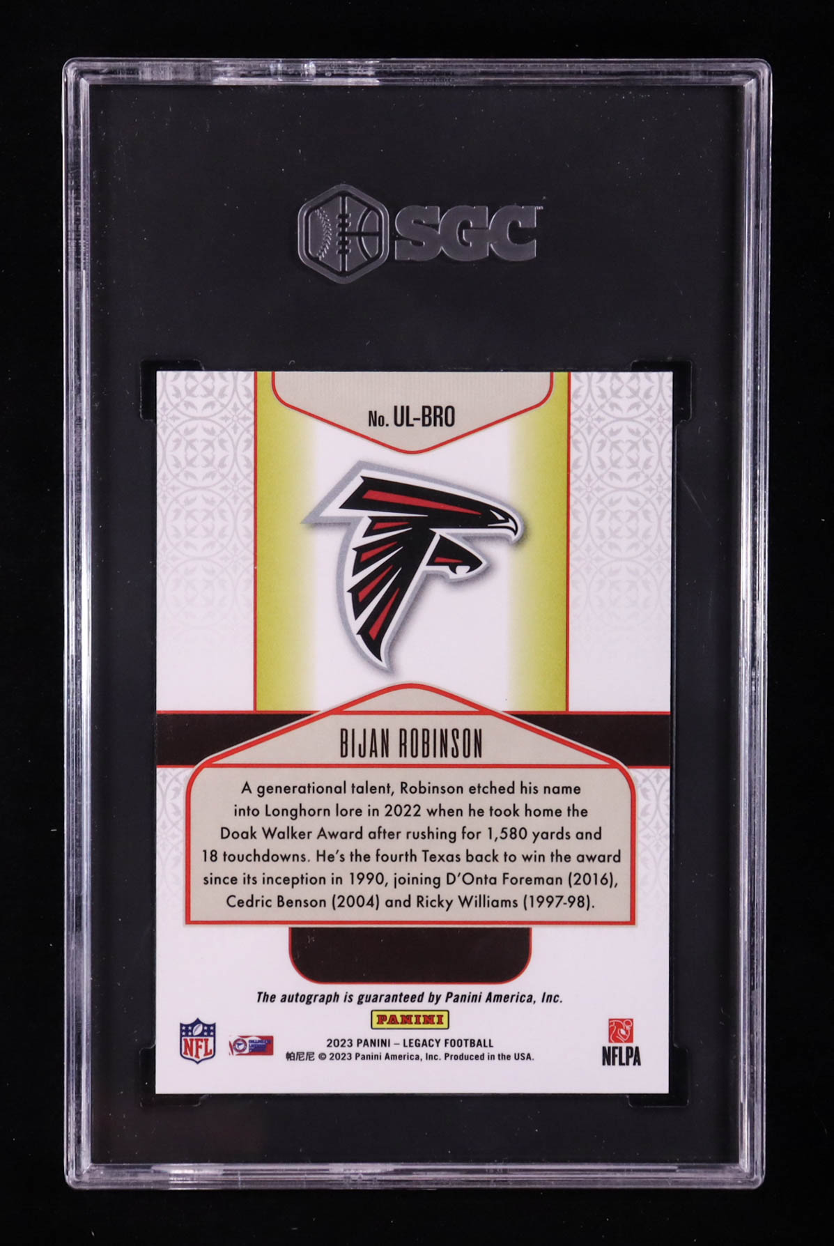 Bijan Robinson 2023 Panini Legacy Under the Lights Autographs #7 RC (SGC 9.5 | Autograph Graded 10)