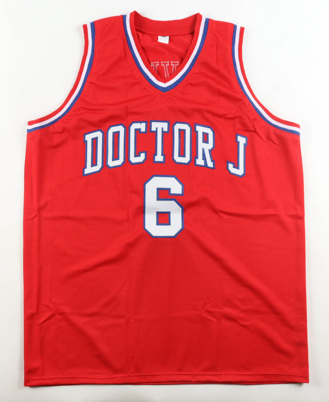 Custom jersey with everything sewn on, size XL. Hand-signed by Julius Erving (HOF).