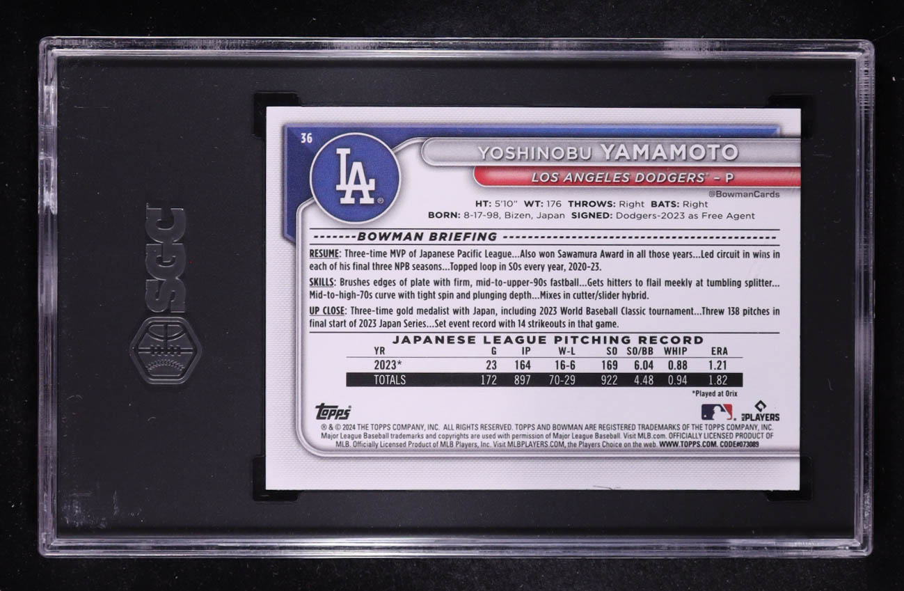 Yoshinobu Yamamoto 2024 Bowman #36 RC (SGC 10)