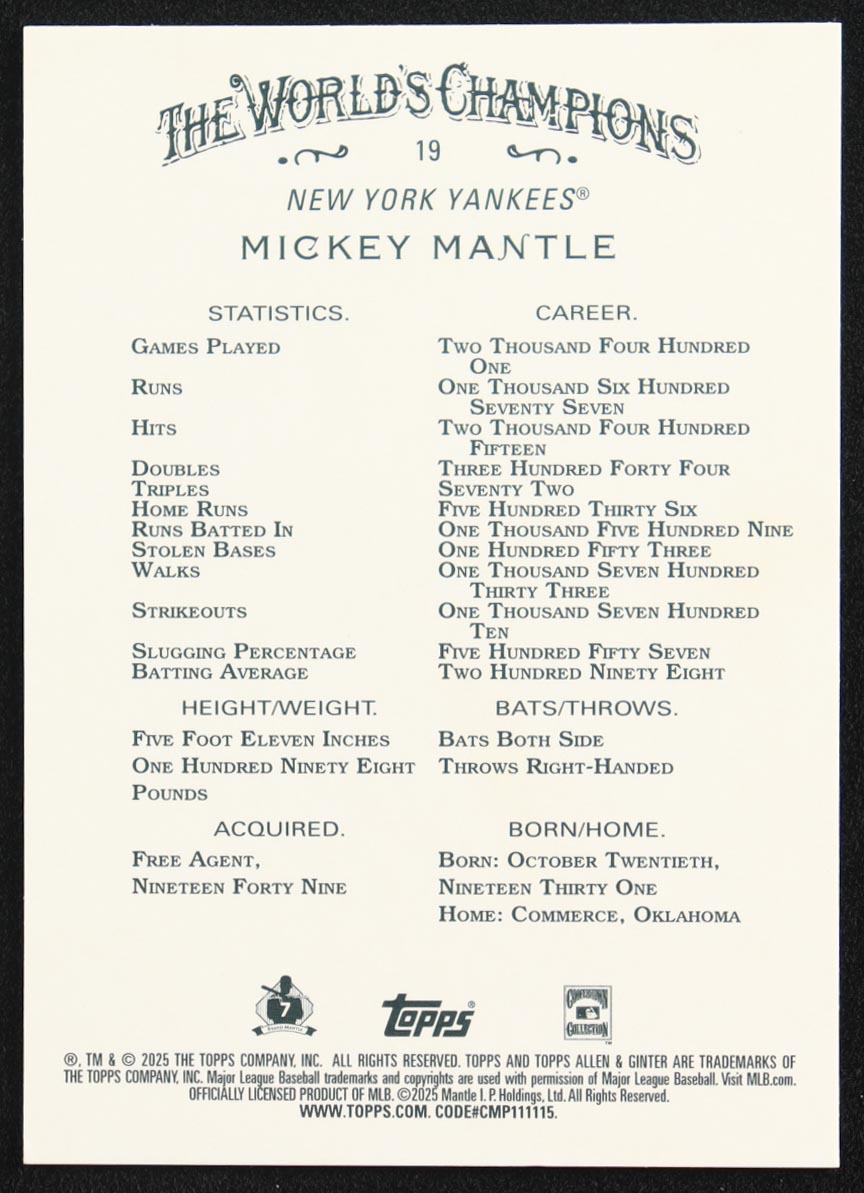 Mickey Mantle 2025 Topps Allen and Ginter Silver Portrait #19