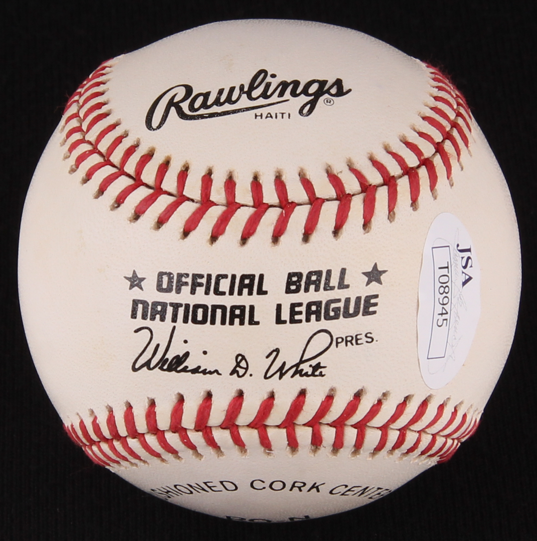 Rawlings Official National League Baseball. Hand-signed in blue ink pen by Frank Robinson (Reds, HOF). Please note, ball shows natural signs of toning.