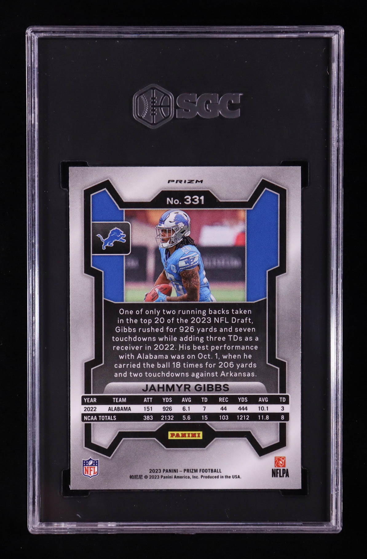 Jahmyr Gibbs 2023 Panini Prizm Prizms Pink #331 RC (SGC 9.5)