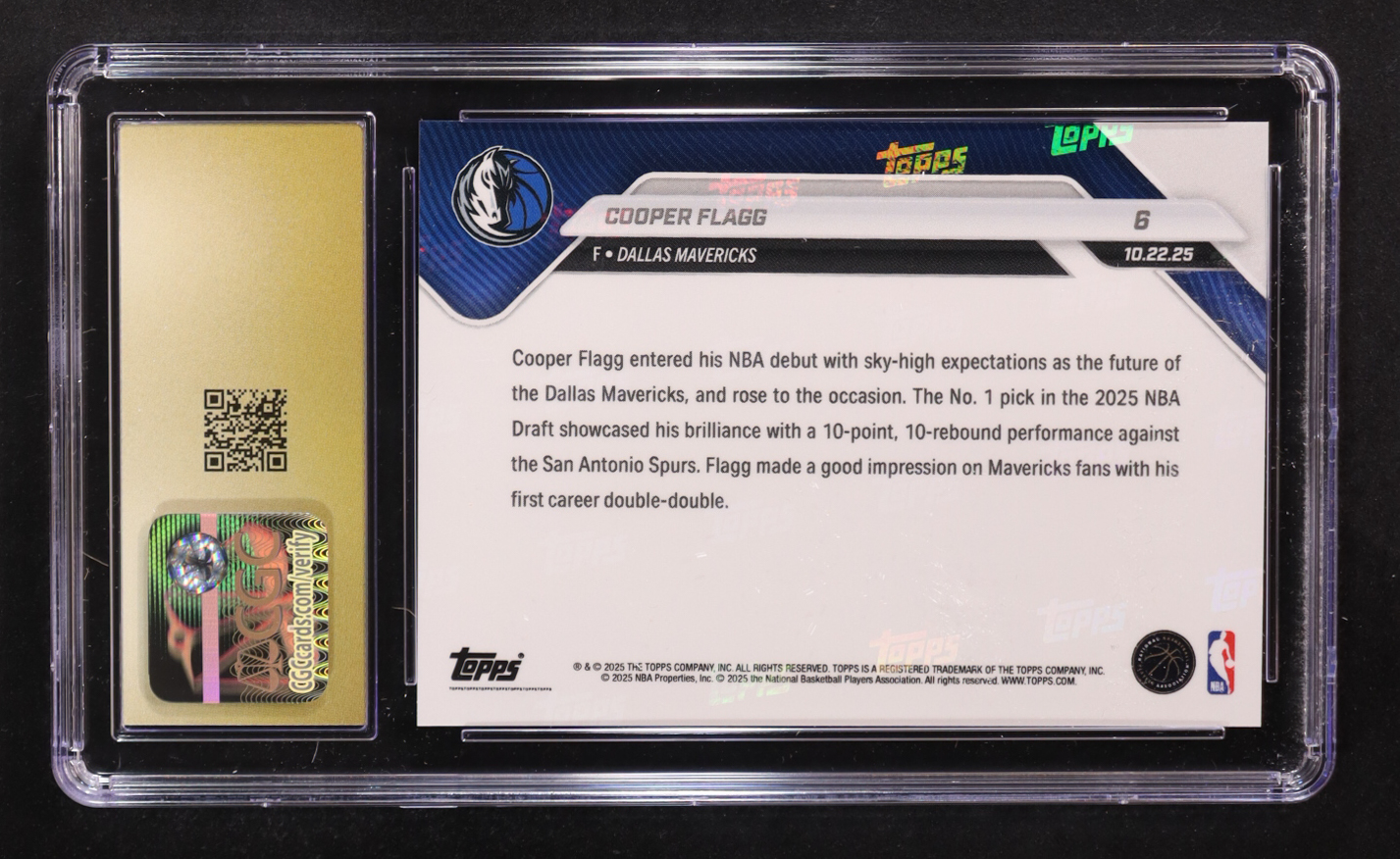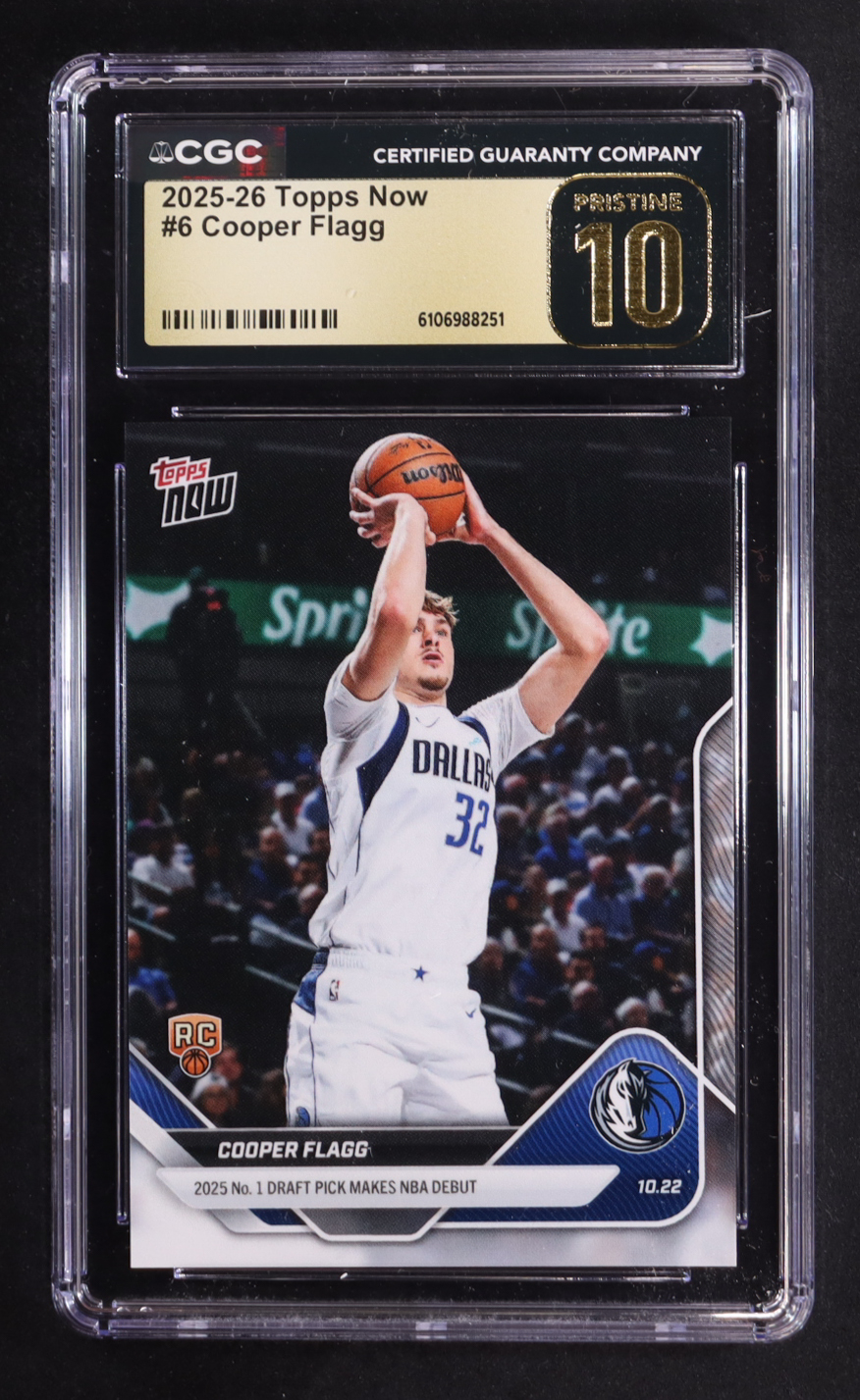 Cooper Flagg 2025-26 Topps Now #6 RC (CGC 10 | Pristine Black Label)