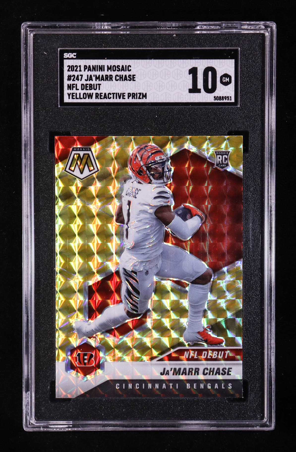 Ja'Marr Chase 2021 Panini Mosaic Mosaic Reactive Yellow #247 DEB RC (SGC 10)