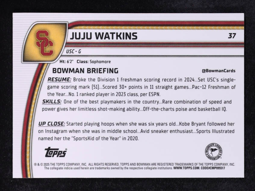 Juju Watkins 2024-25 Bowman Chrome University #37