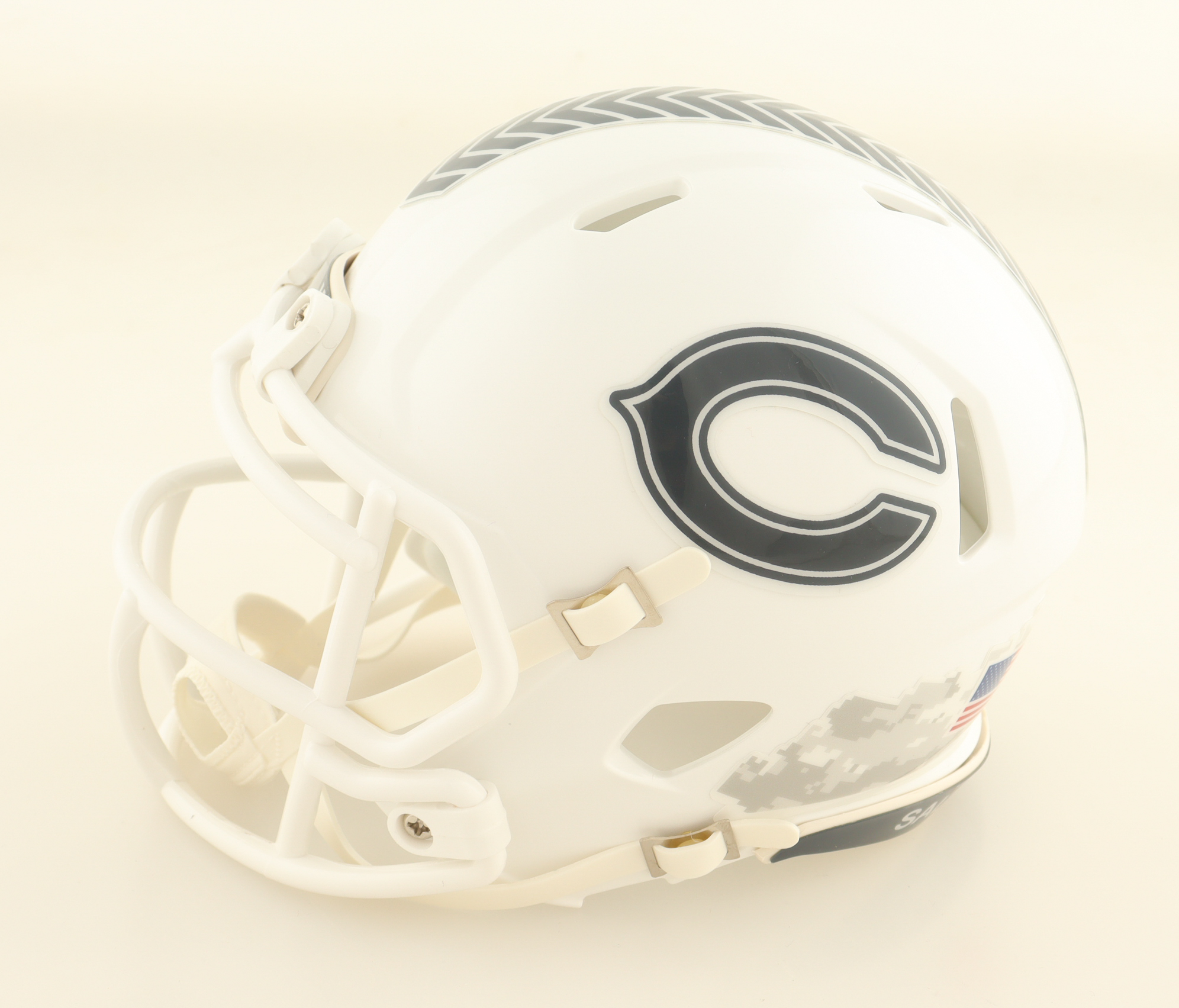 Riddell Chicago Bears Salute To Service Alternate Speed Mini helmet has been hand-signed by Austin Booker.