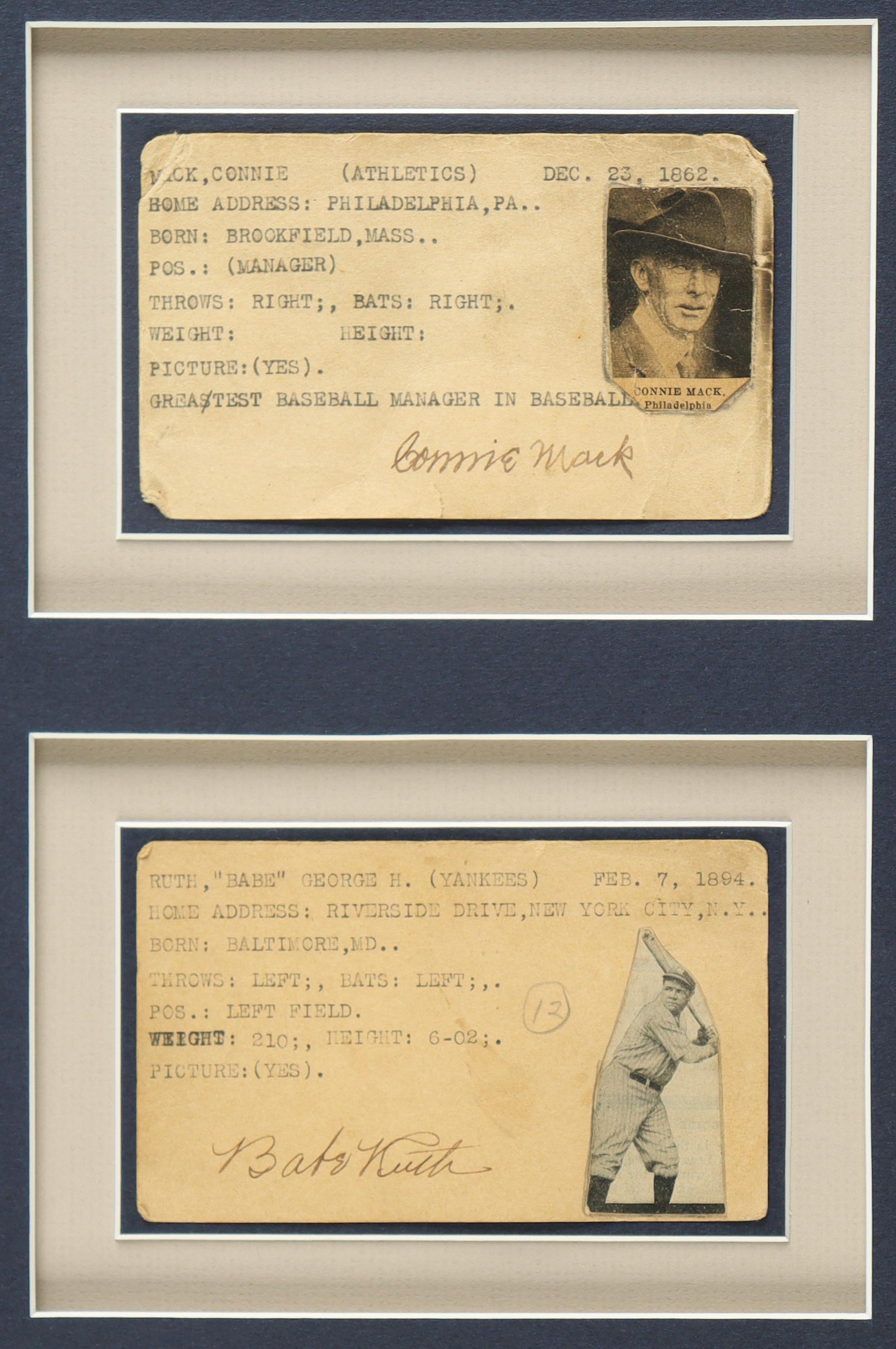 Babe Ruth, Lou Gehrig & Connie Mack Signed Custom Framed Cut Display (Beckett)