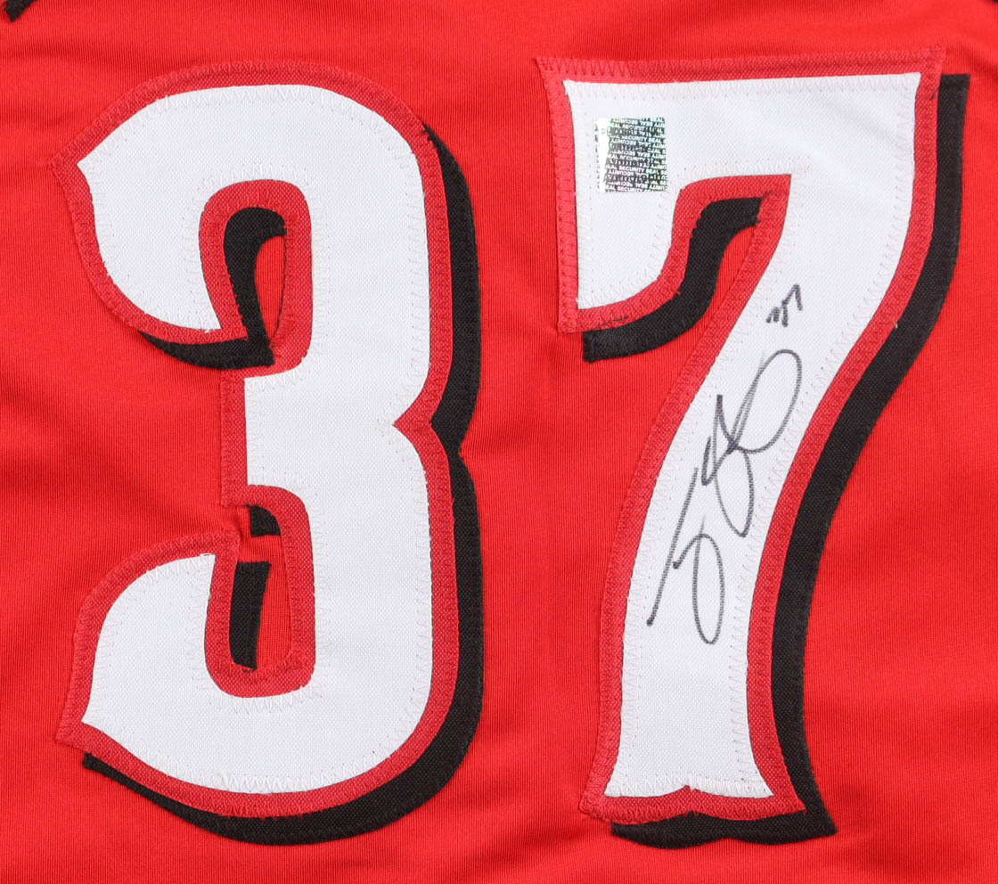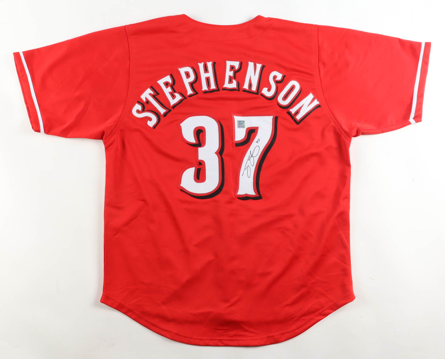 Custom jersey. Everything sewn on, size XL. Hand-signed by Tyler Stephenson.