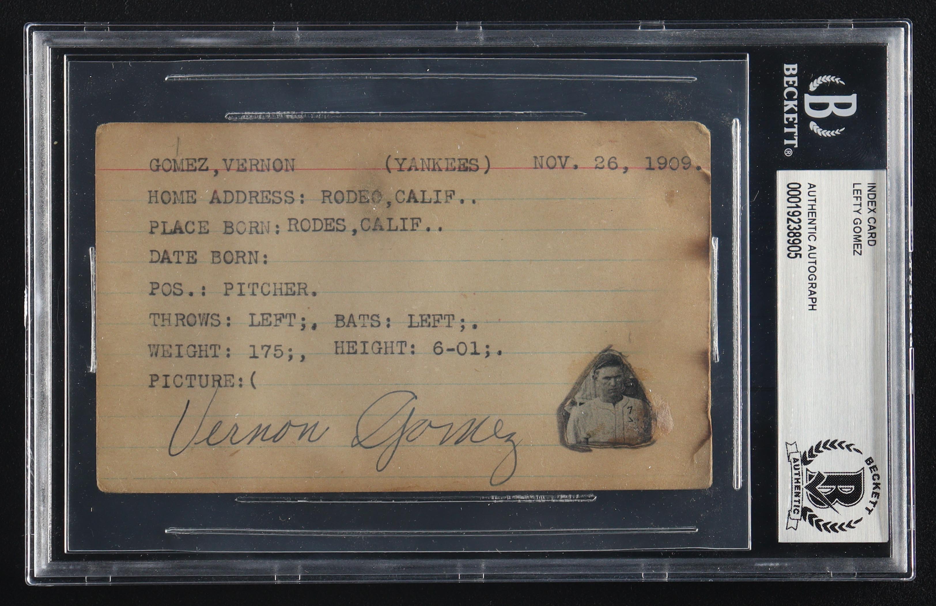 Vernon "Lefty" Gomez Signed Vintage 3x5 Index Card (BGS)